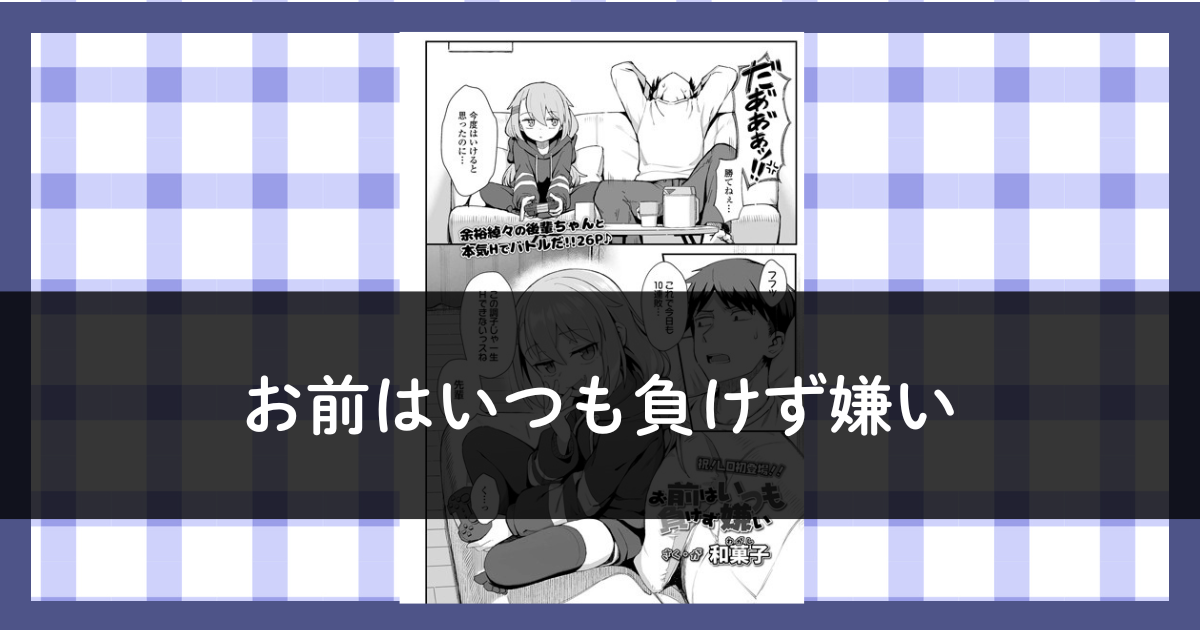 「お前はいつも負けず嫌い」は、先輩が生意気な後輩をエッチなゲームで快楽に堕としていく作品です。 \DLsiteで最もお得に読める!/ 3P無料で試し読みできる! DLsiteで「お前はいつも負けず嫌い」を読んでみる! 作品情報 作品名お前はいつも負け... -