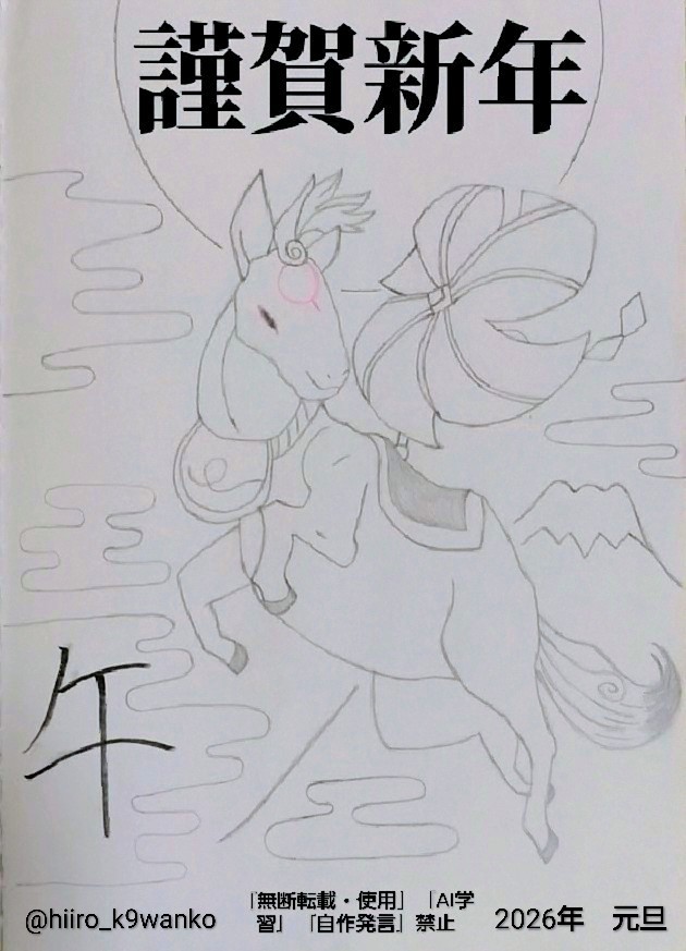 去年の反省を活かして、今年の干支イラストは黒白で仕上げ、色は赤だけにしました✨