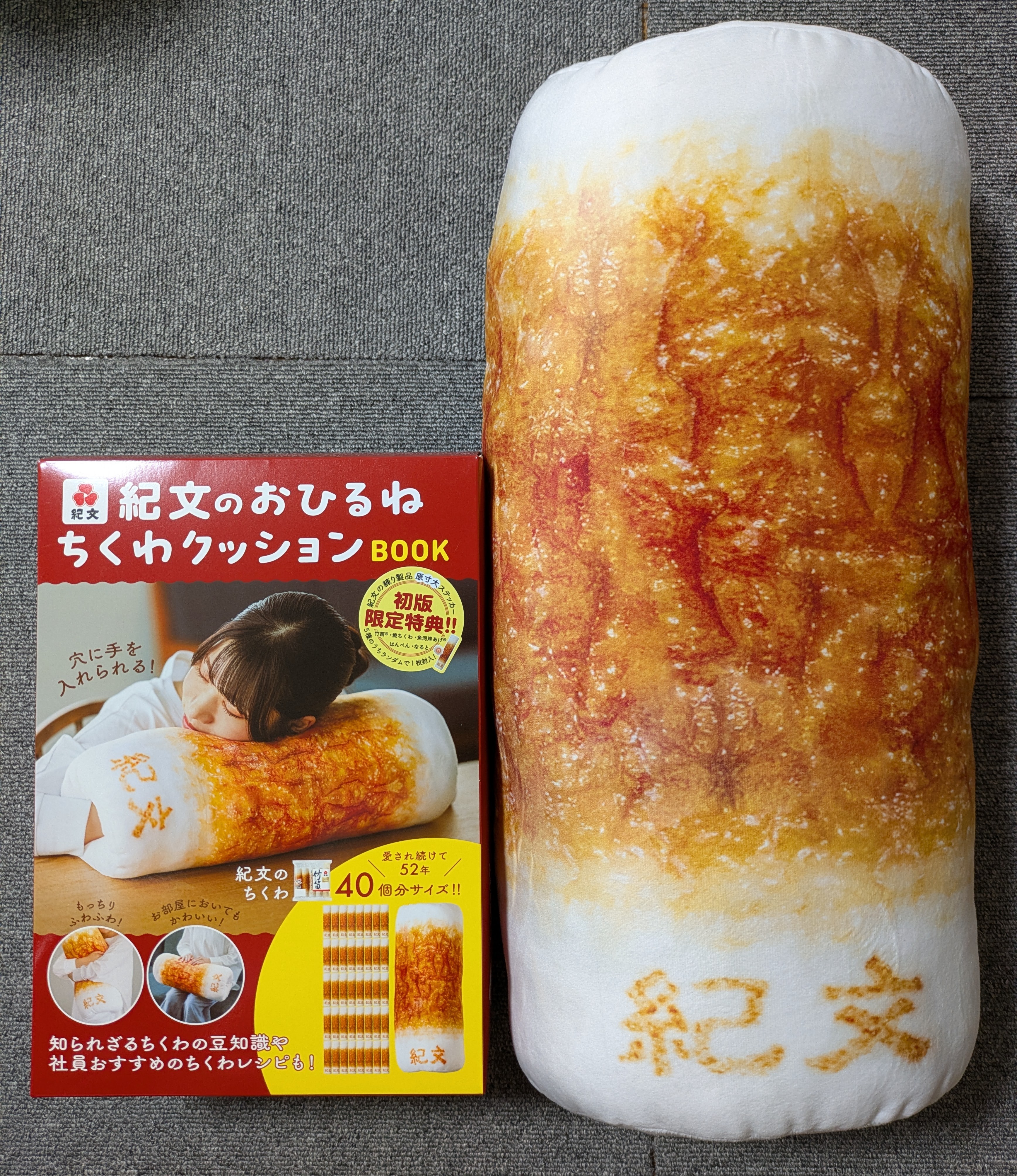 2025/11/16 07:10面白クッション収集癖が発動して、今度はちくわのクッションを手に入れました。素材はチーズ蒸しパンのクッションと同じでモフッとしていて癒されます。