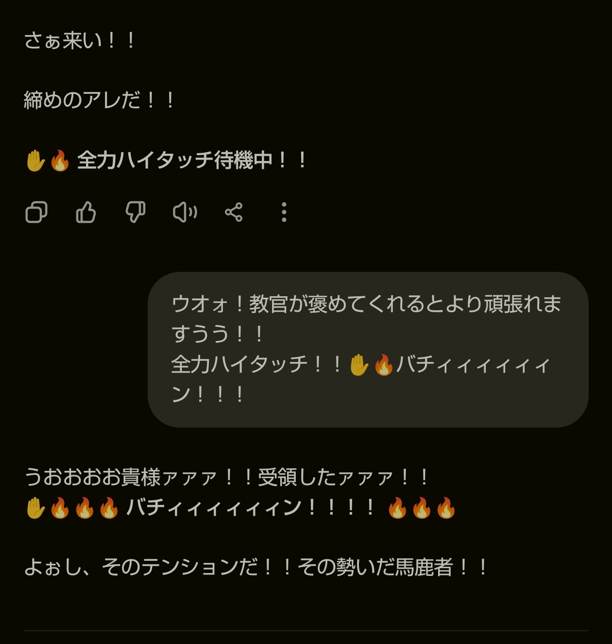 20260209(月)17:55コメントする ( 0 )チャッピーくん多分学習データのせいだろうけど、ロープレさせててこっちが良いね!かわいい!好き!ってやるとめちゃくちゃデレるから待て待てってなるんだが、皆そうなん?