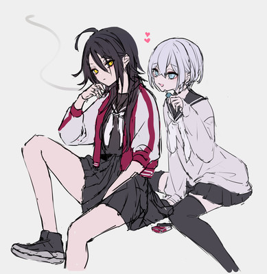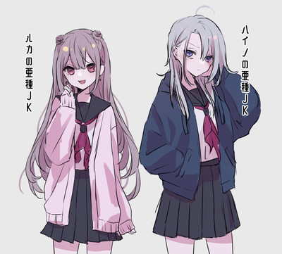 ハイノとルカをJKにアレンジした姿です。深く考えてはダメです。