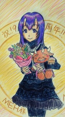 夢螺さんとの9周年記念描き合いで描いていただいた葵(とスノードロップちゃんのぬいぐるみ)です!