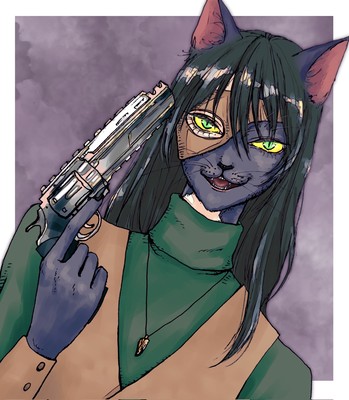 ちゃんとタイガーアイのペンダントつけてるし、銃がリボルバーなんですよ!