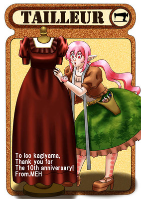 ハティさんは仕立屋さんのエルフということで、お仕事中のハティさんを描かせていただきました。