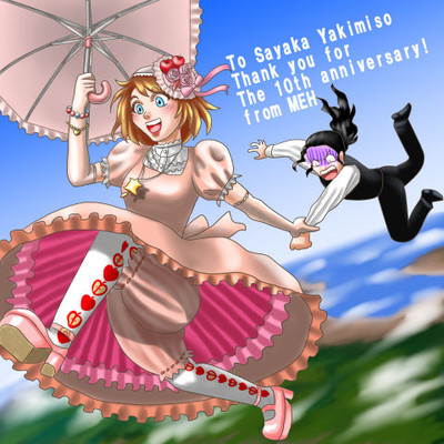 10周年描き合いスレにて描かせていただいた焼味噌さやかさんのキャラ、スクアちゃんとバトラー氏です。