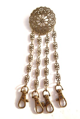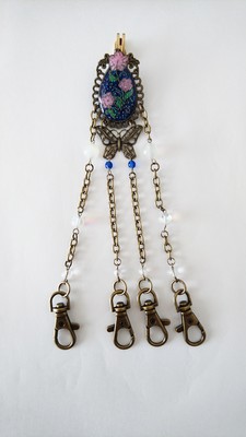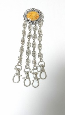 あまり重いもの(財布やスマホ、ドリンクなど)は吊り下げられませんが、鍵、定期入れ、懐中時計、防犯ブザーなどを吊り下げてお使いください。
