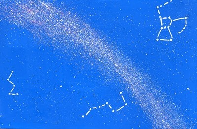 左から順に、カシオペア座、北斗七星、オリオン座。