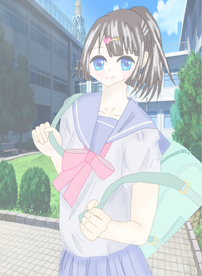 おひたしマヨネーズ様からのリクエストで、姫カットポニーテールで、濃い青い目にセーラー服の子、完成しました♪