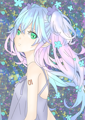 この線画を見た時、光と闇を感じる雰囲気を出したくて、髪の毛を3色にしてみました(◍•ᴗ•◍)✧*。
