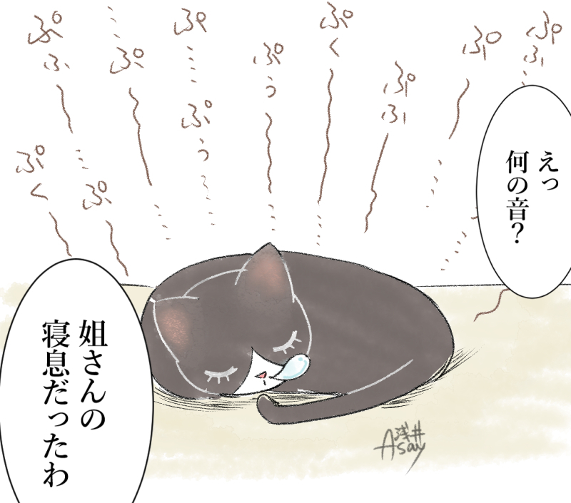 ちょくちょく「何か怪音が!?」となる程度には大きい寝息です。