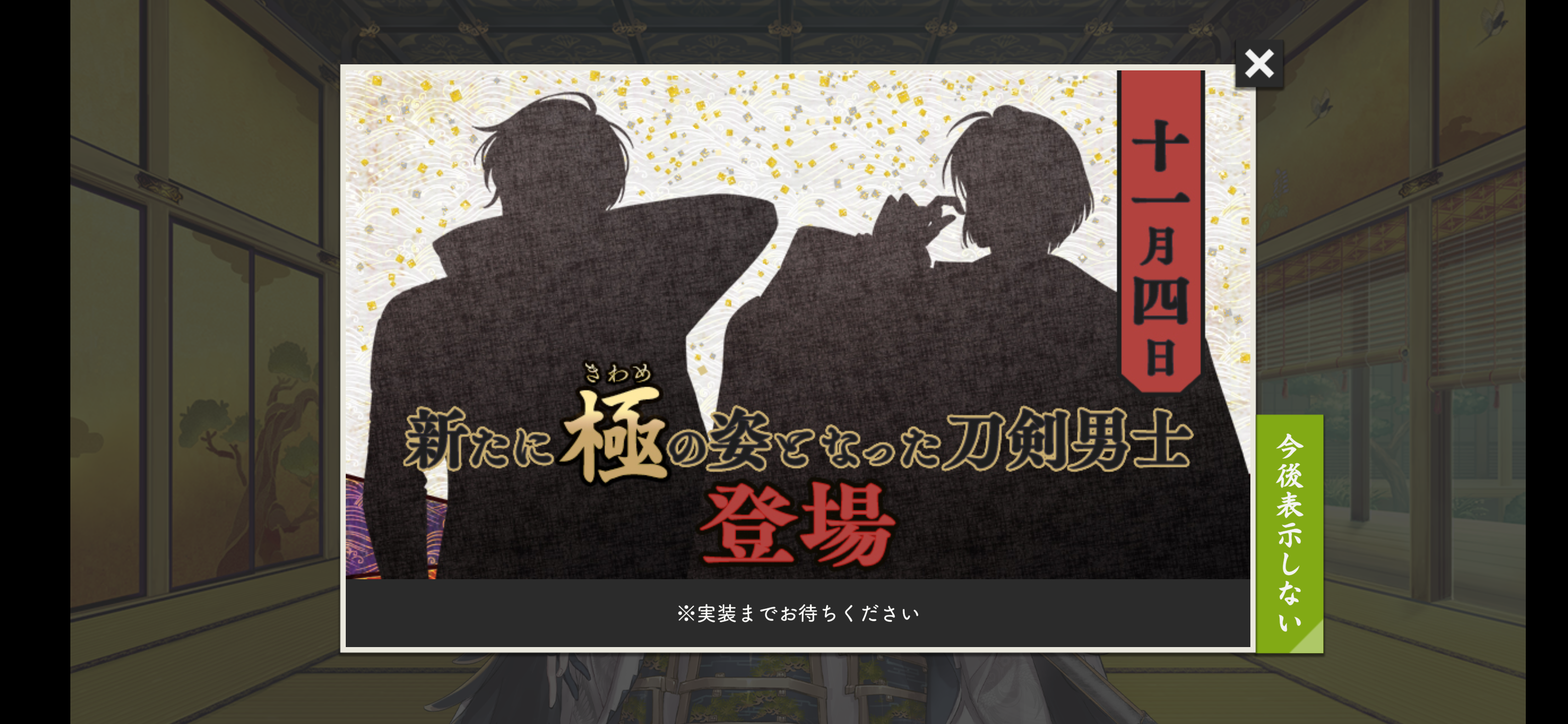 10になった刀剣男士はお祝いの席が設けられる演出があり、審神者から贈り物を贈れるようです。