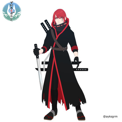 忍びということもあり、黒と赤のシンプルな色合いの服となっている。