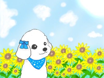 愛犬とひまわり