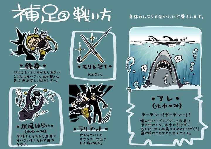 ・武器:拳、包丁、銛