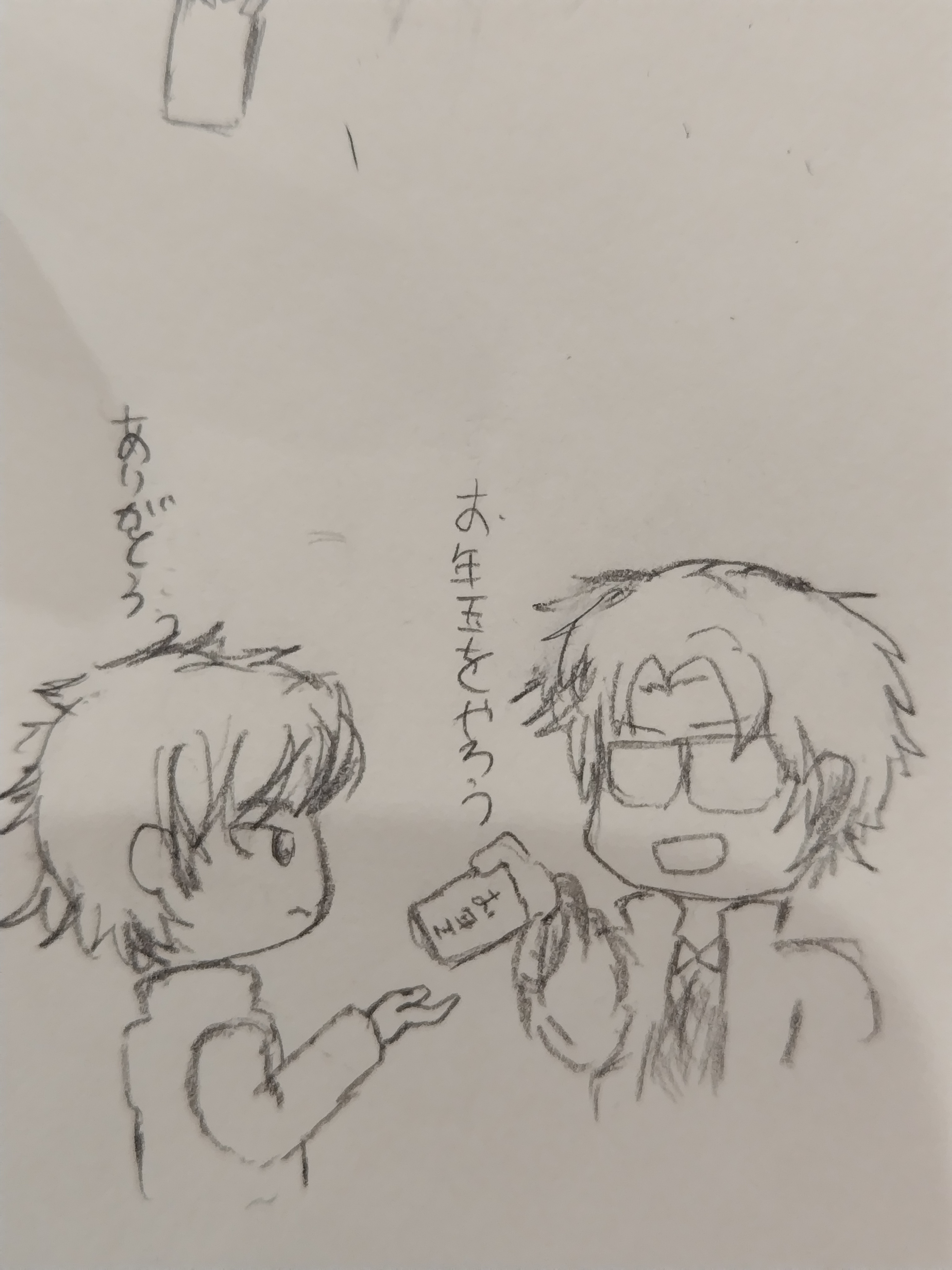変わりに明け方のテンションで描いたヒィ君にお年玉を配る劾さん。