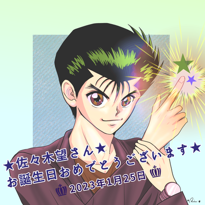 本日1/25は幽助役の佐々木望さんのお誕生日\(^o^)/おめでとうございます🎊これからも素晴らしい人生を送られますよう、そして益々のご活躍をこっそりとお祈り申し上げます! 思い返せば30数年前…佐々木望さんといえばサムライトルーパーで一世を風靡され、自分より少し上のお姉さん達に人気のある方なのかな?!はなきんアニメ大賞今年も1位だね?(ご存知ない方は是非ググって下さい😂)と少し遠目から見ておりまして。 幽遊白書がアニメ化される際にほんっっま嘘じゃろ??不良役よ?出来るんこの人…とか思ったんですけど…(失礼にも程がある) ですけど… もう幽助って望さんじゃなきゃ無理じゃん?????? 秒で手のひら返して大ファンになりました!!キャラソンもオリジナルアルバムも大好きでドキドキしながら望さんのお声と共に過ごした思春期でした。 時を経てまた幽遊白書に私が戻ってきた時もきっかけは望さん。もう何回もこの話してるんですけど、マジバトのリリース後のイベントに登壇され、配信された動画を見て螢子ちゃんへの想いを語ってくれた時に時空がスパッと切れまして(螢子ちゃんの話投げ込んでくれたレインボーの池ちゃんほんまGJ大好き愛してる螢子ちゃんのモノマネはちょっと似てなかったけど😂)現在に至るという… 更に驚いたのはまさかの本業こなしながら東大出てました宣言…未だかつてこんなに素晴らしい声優さんのニュース聞いたことないですよね?!?!この3月に東大関連の書籍を上梓なされるそうで本当に楽しみです!!予約するぞー!(どこで買うかまだ迷い中→Amazonで買ってランクインさせた方がいいかな?🤔) あとメイトさんのアンケート書いたら幽ちゃんのページでコメ載せていただけてました📝(そこそこ長文のやつです)✌︎アンケート募集の際にご本人がRTされてたのできっとも読んでいただけてるはず〜!! 昨年ご本人様にお会いできるイベントに行けたのでそこでお話されてたことも書きたいんですけどそれなりに長くなりそうだから日記の方に書こうかしら 天から授かった宝物を自ら磨き続け進化し続けていらっしゃる姿に、自分の好きなキャラクターを演じてくださったのが望さんで本当に良かったと、何年経っても感じさせてくれる素晴らしい人。 マジバト終わっちゃうけど、また今後も幽助の新規ボイス聞けたらなぁ… 前回の天野さんの時のと同じ感じで描いてみました↓望さんの私服の雰囲気です。