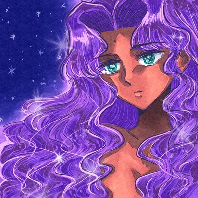ウェーブ髪をいろんな色でざかざか描きたかった。
