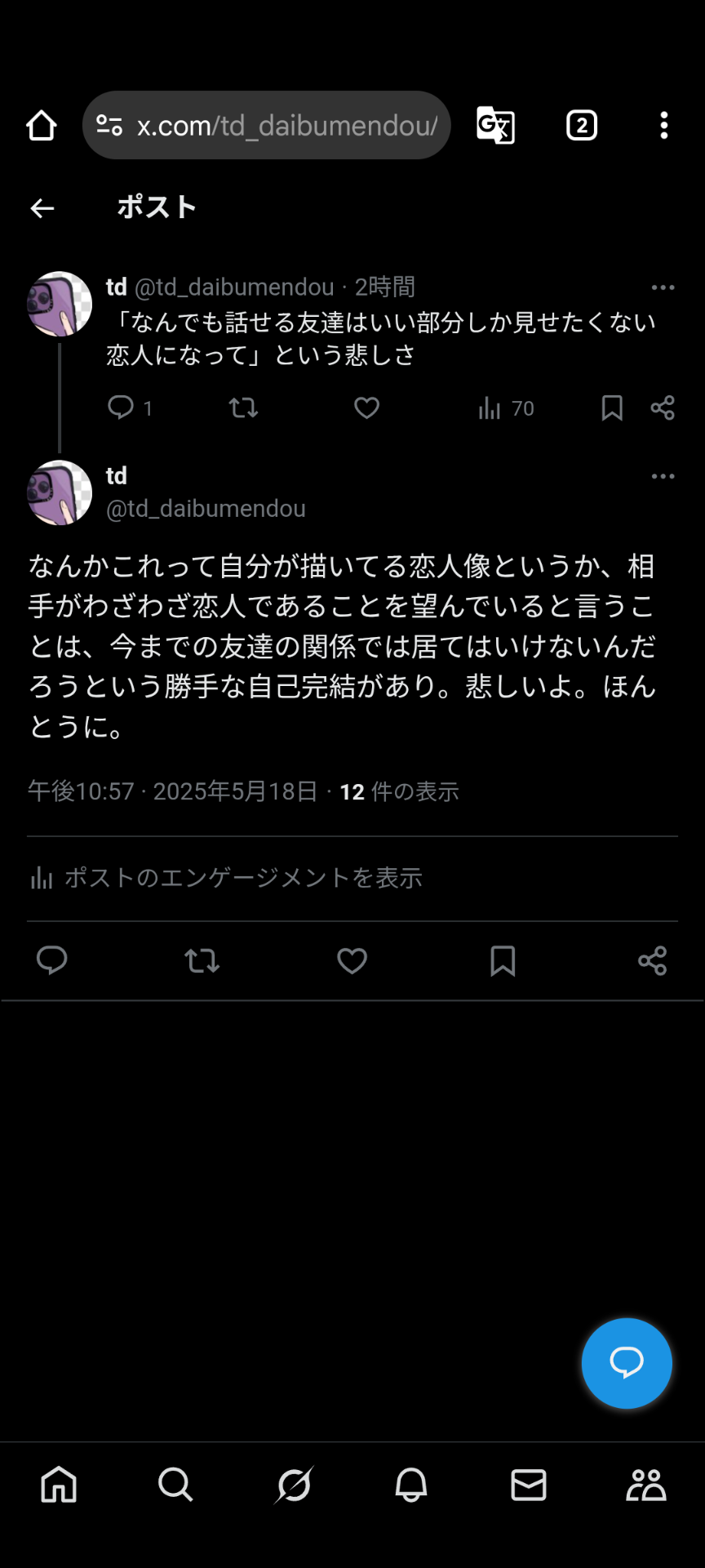 友達は逆に恋人に出来ない論とかとの永遠の溝みたいのがあるよな………