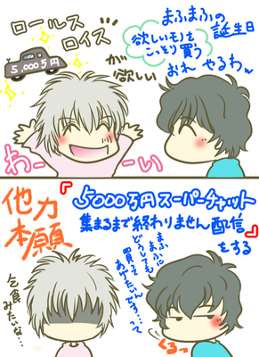お便りの内容を受けて来月のまふ誕プレをこっそり?用意しようとしたけれど、まさかのリクエスト『ロールスロイス』!去年はあまちゃんにベンツって言ってたねwスパチャで稼ごうとするとは流石そらるさん!