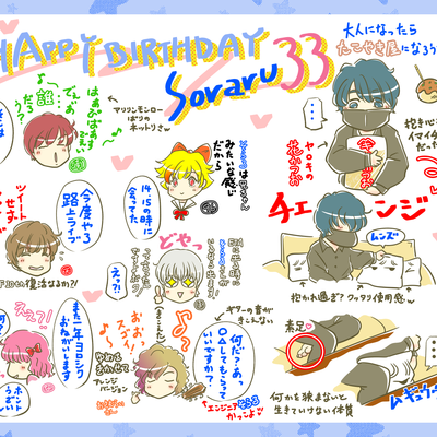 (2021.11.05) お誕生日おめでとうございます♪33歳って信じられないわぁ。カウントダウン=ジャンプなんだww 凸待ち企画だったけど、事前にまふさんにも予定聞いていたし、うらたさんに何時にかけてってお願いしてたし。いっそ逆凸でもよかったのでは?ww 32歳最後はまふまふさん。まふさんカウントダウンが始まる前に通話を終わらせた方がいいと気を使うのだけど、切った後にそらるさん「まふまふと一緒にカウントダウンしても良かったな」いや、ホントよ 。日付が変わり「一発目にまふまふにかけても良かったな」いや、ホントww 33歳一発目はなるせちゃん。なるせちゃんやっぱり話の盛り上げが上手だわ♡ (2021.11.02~03)