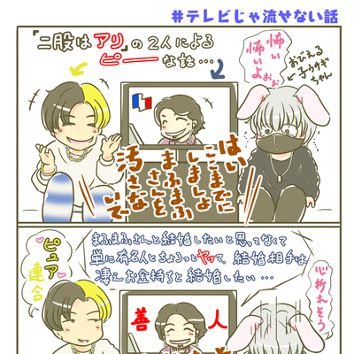 (2021.11.16) そらるさんがツイキャスで、まだ配信中だったこの『テレビで流さない話』の事を持ち出して(←そらるさんは10分ぐらいしか聞いてなかった)まふまふ何て言ってた?、他に何のテーマがあった? 、と結構語ってたね。こういったトーク番組に興味あるのかな。 歌い手仲間では論破的な役割を持つまふさんだけど、ひろゆき、ヒカルが相手だと子うさぎちゃんになっちゃうwwひろゆきさんいわく「まふまふさん演技上手」。配信用キャラ分け?www なんにせよひげおやじさんのまふさんボディーガードポジションが好き♡ (配信日:2021.11.08)