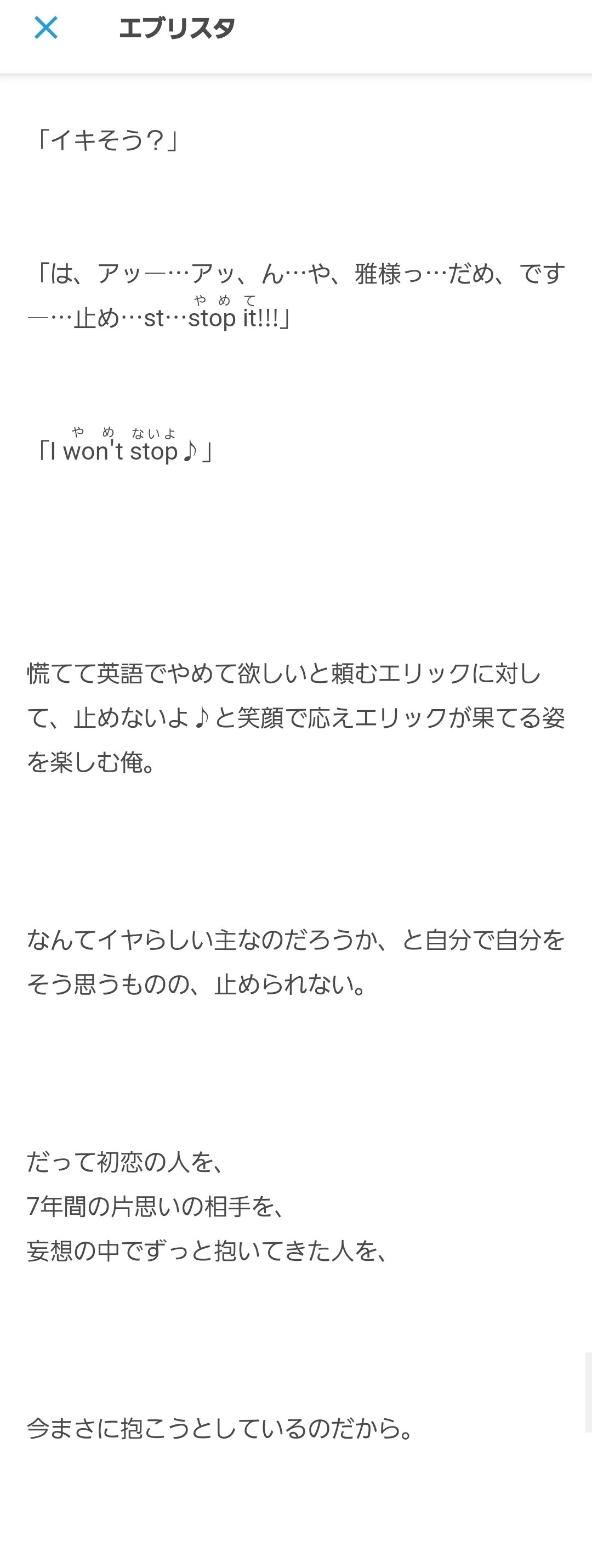 20240203(土)14:46とりあえず、囚愛2章の雅sideまで終わったらエブリスタで連載はじめますかねー。20日間ならにエリックsideおわるやろ。一次創作