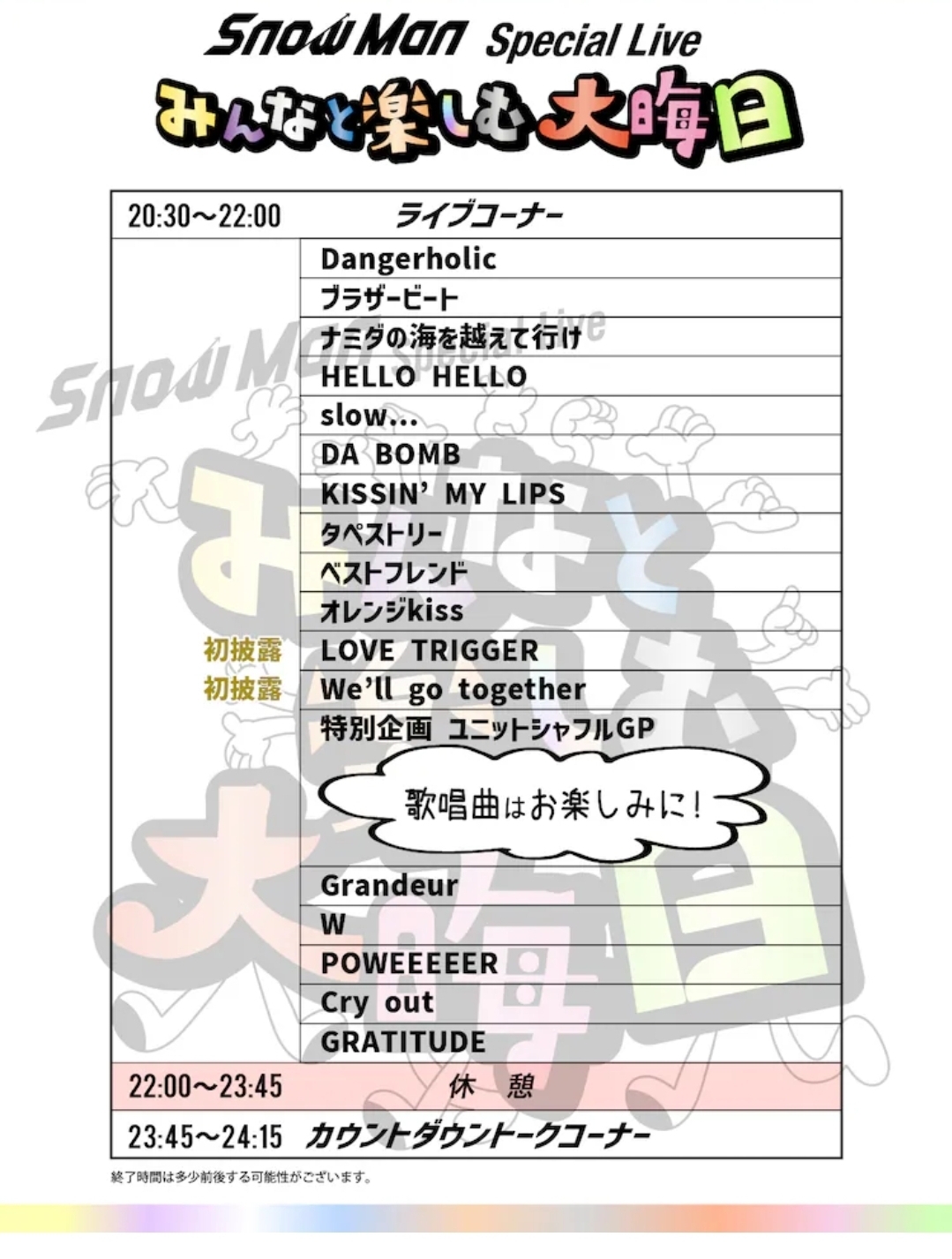 20231218(月)20:53あれ?Snow Manもう出番終わったん?