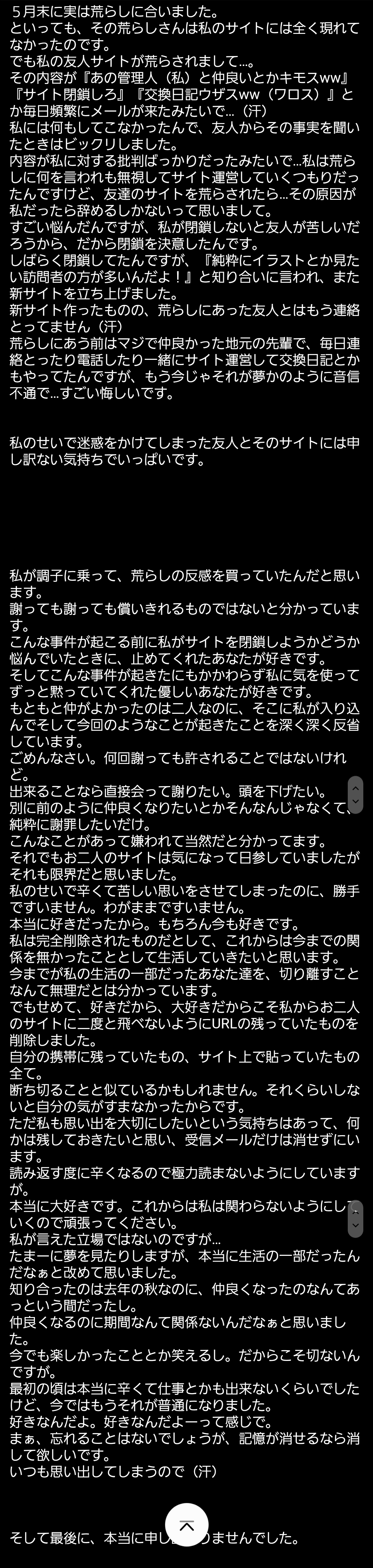 実は荒らしにあってると言われたわけです。その荒らしは私のサイトは荒らさず、ユキちゃんと、ユキちゃんと仲の良い方の2サイトを荒らしていたようです。