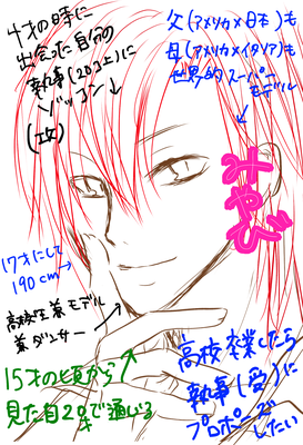 せっかくならめめっぽく黒髪にしてみたやつも載せます。本来は赤髪です。
