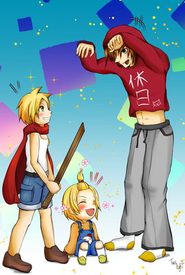 めぐるさん宅の方々の幼少期のお姿がほんっっとうに皆様可愛くてですね…勢いと衝動のままに、こっそりうちの子とコラボで描かせて頂いちゃいました〜