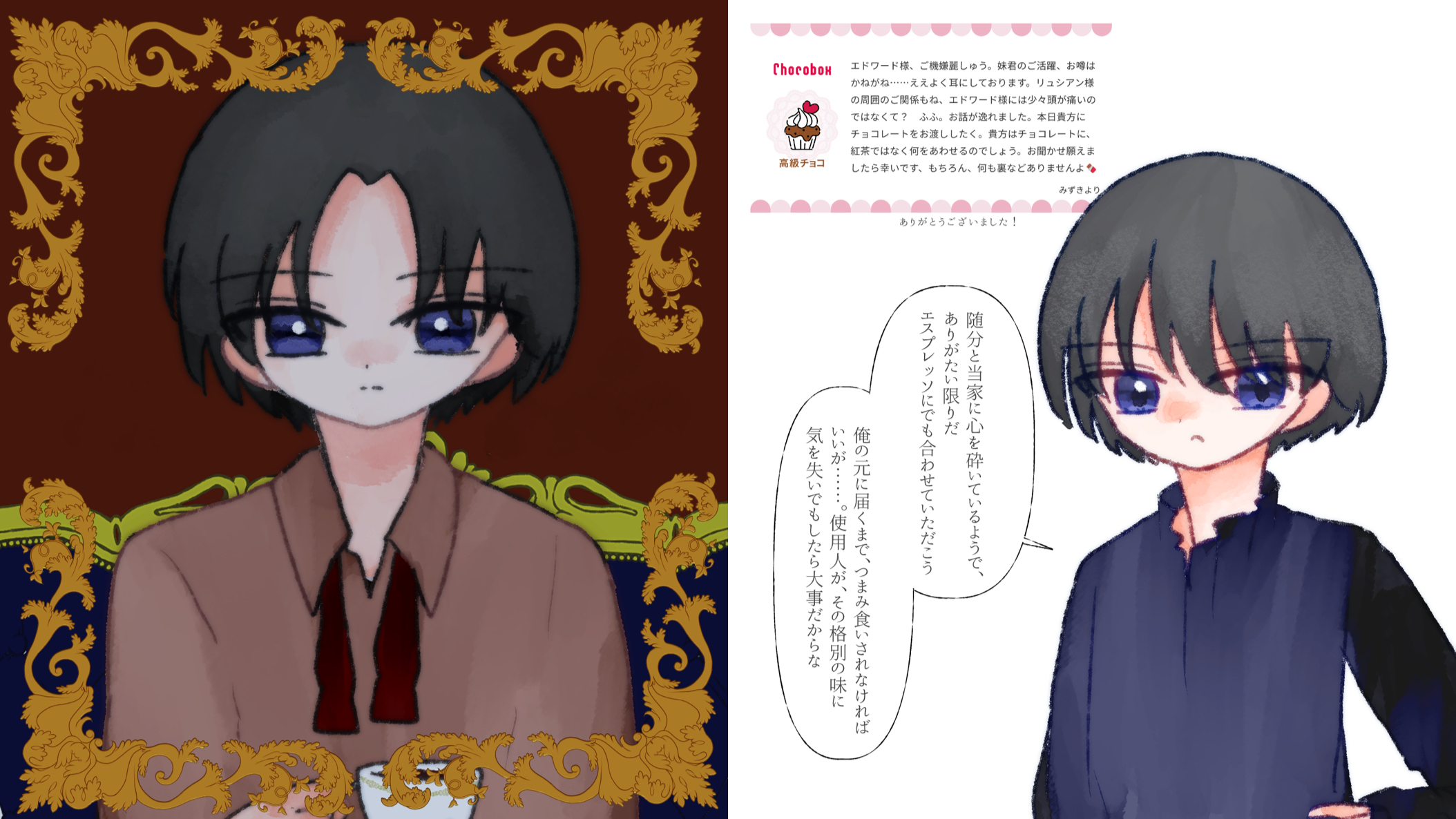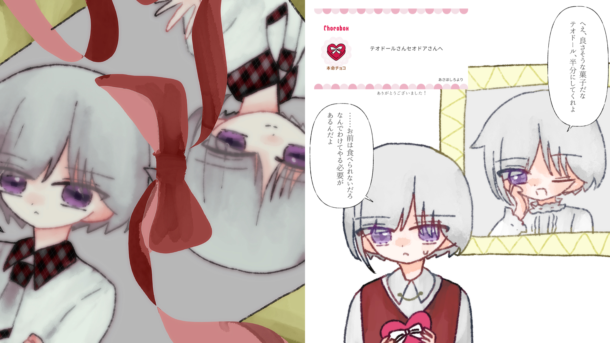 単発創作に登場するテオドールとセオドアです。見た目はそっくりなのに中身は真逆の2人。