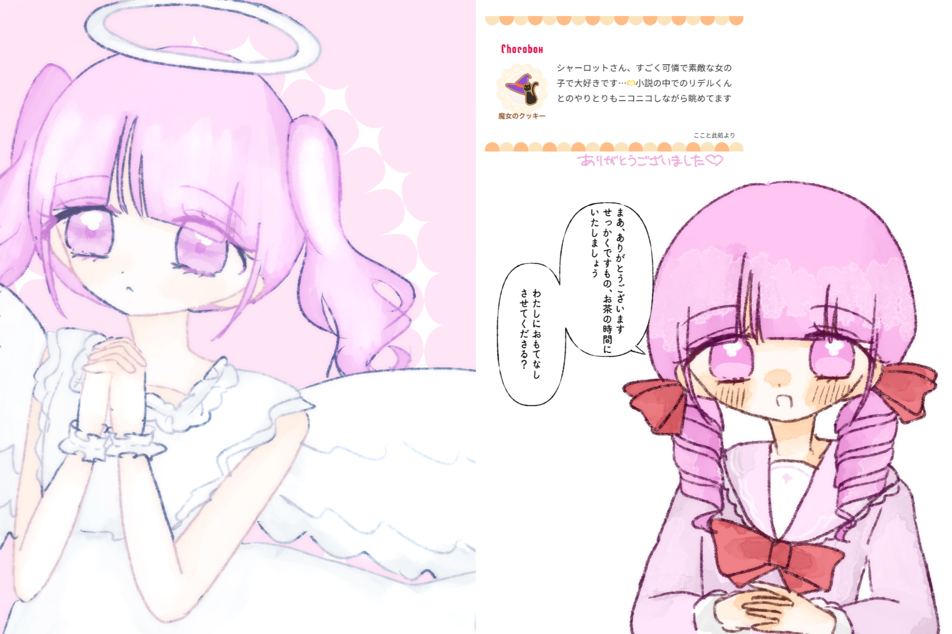 シャーロットです。仮装は天使!去年も天使描いた気がします。