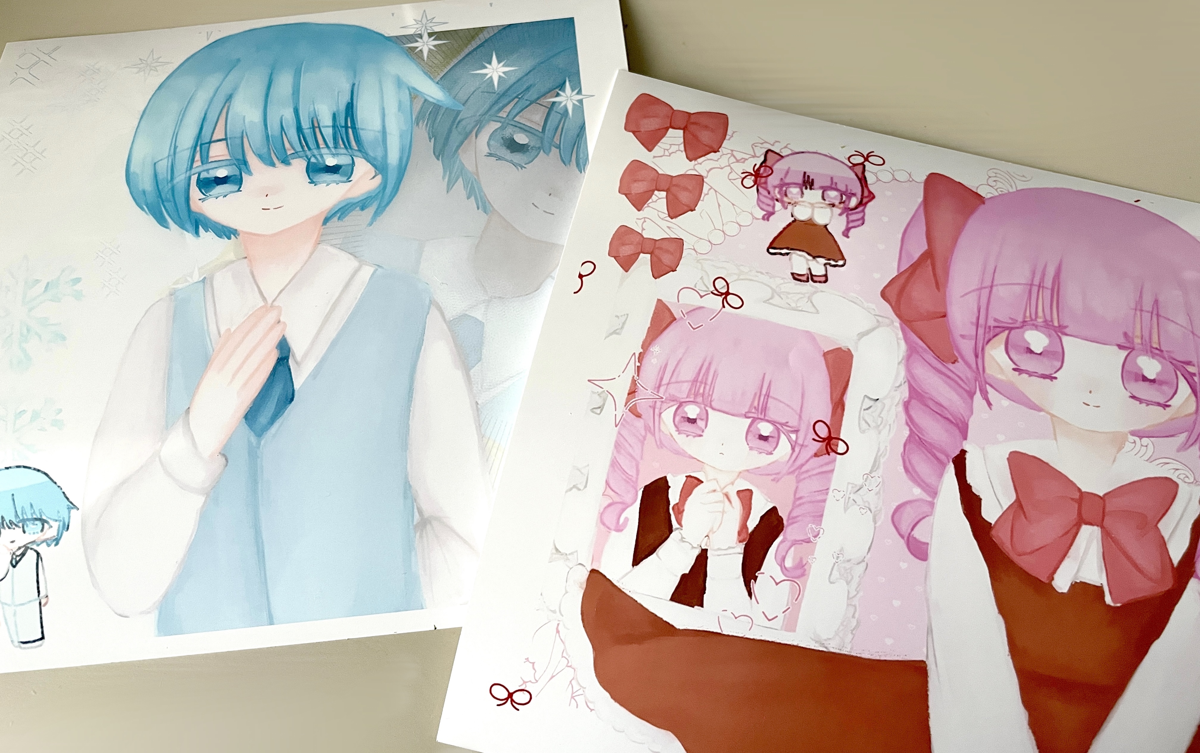 昨日いいねもありがとうございました♡創作別お礼絵増やしたいんですが、使っていたペンとかサイズとか全部忘れたのでどうしよう。お返事