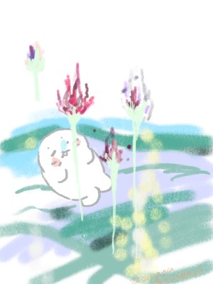本日描いた #しろたん は、私が思いつく限り一番素敵な世界の海の上でお昼寝しているイラストです。「ぼくは しろたん」を公式音源で聞く手段が欲しいです。サブスクに入らないかな。