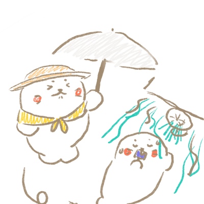 まだまだ夏のしろたんのイラストです