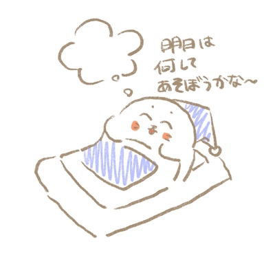#しろたん 明日何して遊ぼうか考えながら眠りにつくしろたんのイラストです