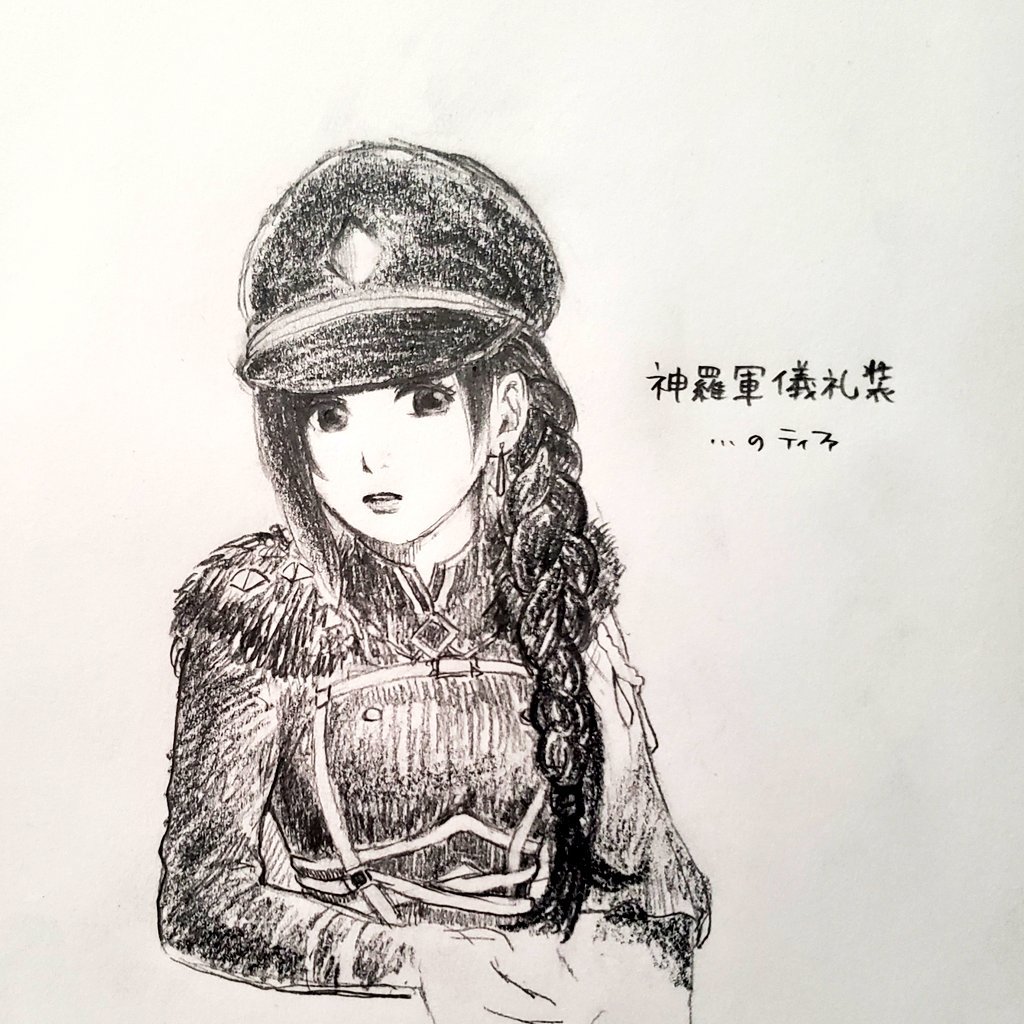 ティファはなんでも着こなしてくれそう、と思って勢いだけで描いた絵もあるんですよー。見てやってください!👇👇ただ、私の画力とセンスの問題でイマイチな仕上がりになってますが、軍服🐬もいいと思うんですよね~。