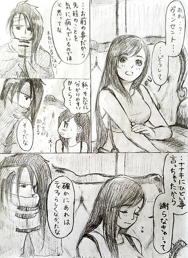 拙いマンガなのですが、ヴィンセント、ティファ、それぞれがお互いを意識し始めたきっかけを大切に描きました😌