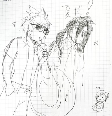 エバクラでも夏のイベントやってますし、夏が来た!🏖️👙ということで描いた落描き?ラフ?メモ?です。方眼紙に描いちゃったのをそのままアップしたので見辛くてごめんなさい。