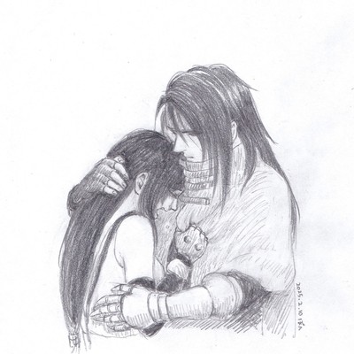 ヴィンティ好きな人なら一度は妄想するシーンではないでしょうか…☺️泣いてるティファをそっと抱きしめるヴィンセントです✨ 私も何度も妄想してきたシーンですが、ちゃんと描いたことないかも。いや、ヴィンティ描き始めてすぐくらいのころに描いたかな…?🤔記憶あやふやです(笑)