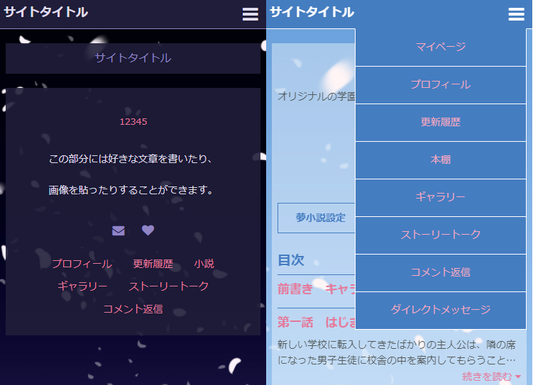 桜の花びらが降り注ぐデザインで、青空バージョンと夜桜バージョンです。