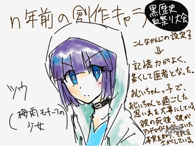 梅雨をモチーフとしてn年前に作った女の子キャラ。名前の由来は梅雨(つゆ)をもじっただけ。