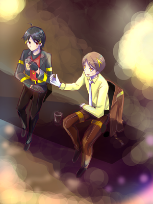 甘夏様、キリ番ゲットおめでとうございます!リクエスト、甘夏様宅より宵くん&梢くんを描かせていただきました…!二人とも好きです…白手袋と黒手袋コンビだ…!とか歳の差萌…とか色々楽しみながら描いておりました…謎構図ですみません…(_ _;)