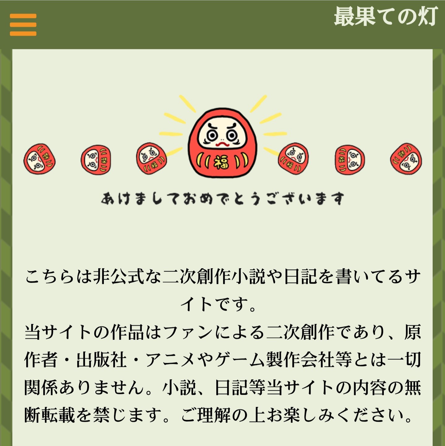 三が日だけサイトデザインを「福だるま(緑)」に変更しました