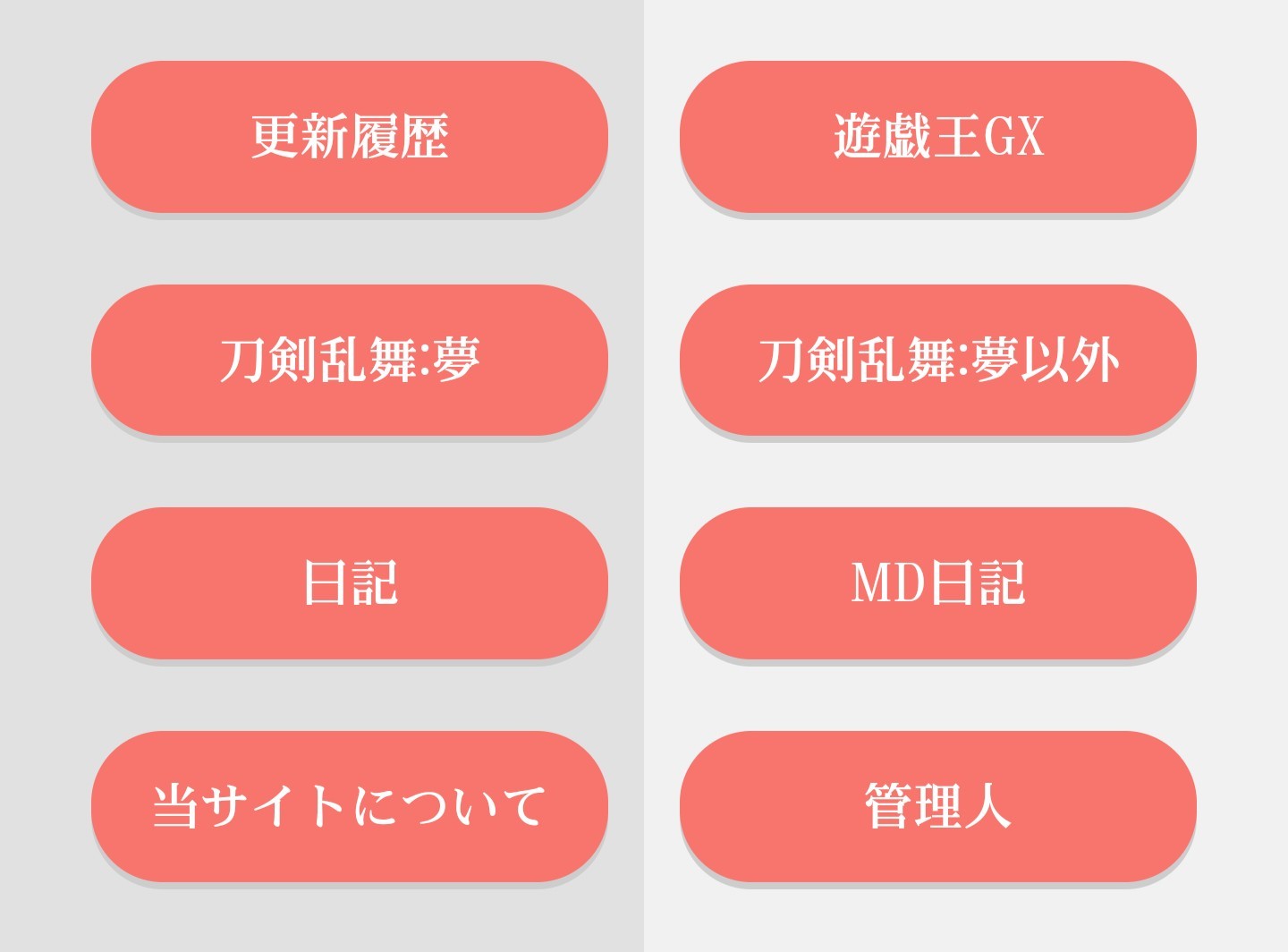 前から本棚ページの切替ボタンをわざわざ押すのは読む人が面倒かなあ? と思ってたんです。でもGXは小説がいっぱいあるからどうやってリンクしよう? グループ別のリンク方法がよくわからない……って思ったんですが、本棚のトップにGXが来るみたいだからそこをGXページということにしてリンクしました。多分ズレないと思う……。