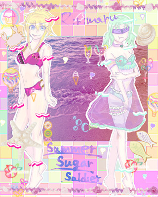 アイマヒュリーがギャル水着で、蝶沙がソシャゲ水着です。