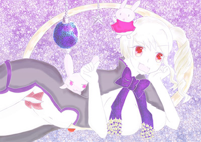 背景の紫の模様は、一生懸命描きました。後から素材を借りればいいんだ。と、気付きました。