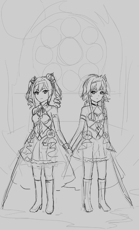 ●まあ会場まで電車で1時間?とか?の距離なので最後までチケット取れなくても会場までは行ってやろ!と思ってます。スタッフさんに名刺を渡すとブロマイドがもらえるキャンペーンもあるらしいので渡しに行きたいですねえ! ということで名刺用の絵を描き始めた。けど双翼衣装(おもにスカート)わけわからんすぎる めんどくさいよ~~~。涙。