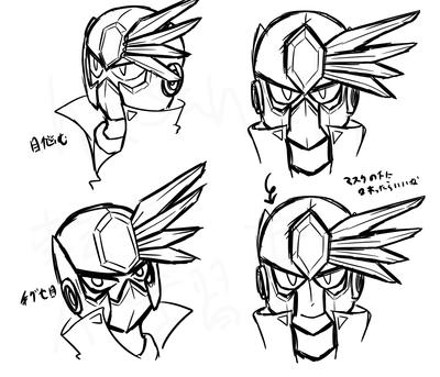 等身高めな人型ロボ系って目描く時悩むなぁ、と