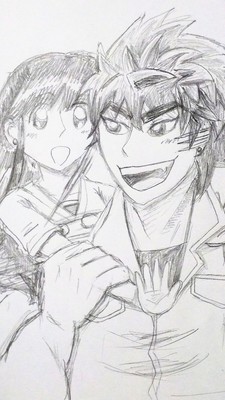 トリコと夢主です! 二人の耳のピアスは、本編に書いてあったお互いの瞳の色をしてます。